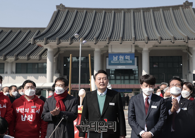 [포토] 남원역서 공약 기자회견 갖는 윤석열 후보