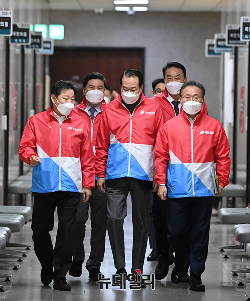 권영세 국민의힘 선거대책본부장이 14일 오전 국회에서 열린 선거대책본부 전체회의에 참석하고 있다. (사진=공동취재단)
