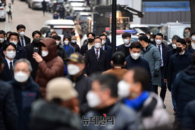 [포토] 공식선거운동 앞두고 명동서 출사표 던지는 이재명