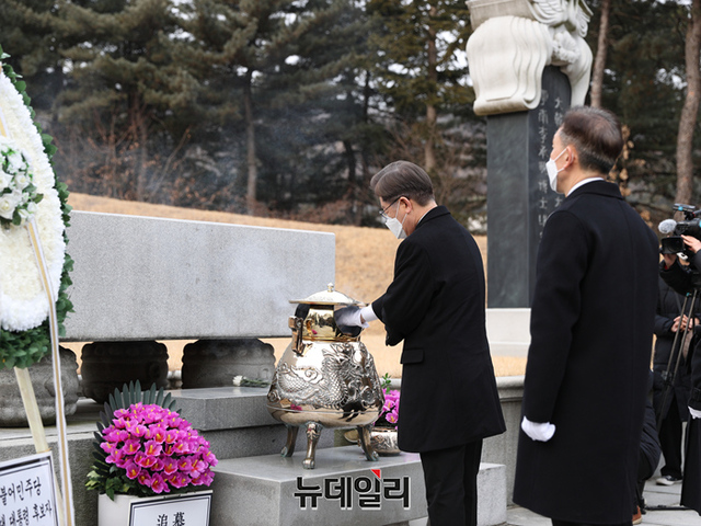 [포토] 이승만 전 대통령 묘역 참배하는 이재명 대선후보
