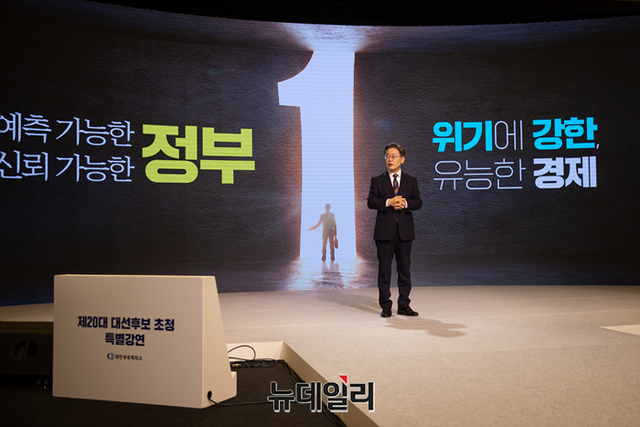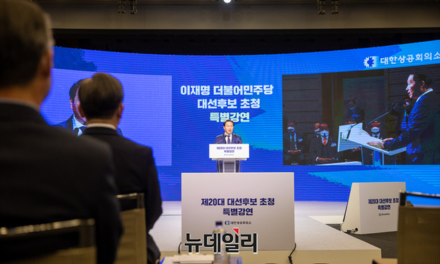 이재명 더불어민주당 대선후보가 14일 오후 서울 중구 대한상공회의소에서 열린 대한상의 초청 경제정책대화에서 발언하고 있다. (사진=이재명 캠프)