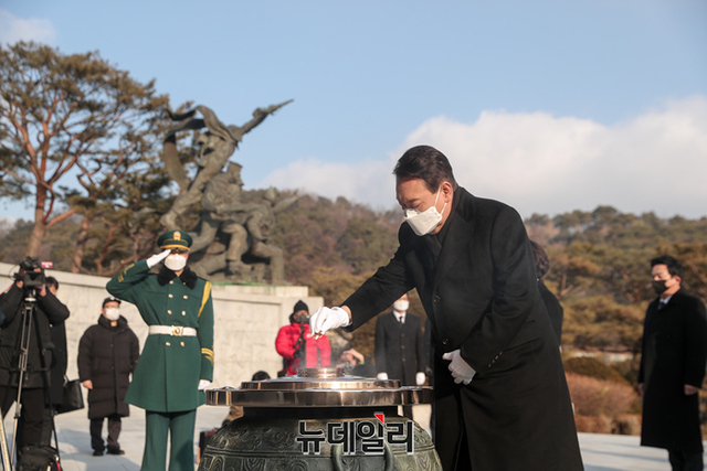윤석열 국민의힘 대선후보가 공식 선거운동이 시작된 15일 첫 일정으로 서울 동작구 국립서울현충원을 참배하고 있다. (사진=윤석열 캠프)