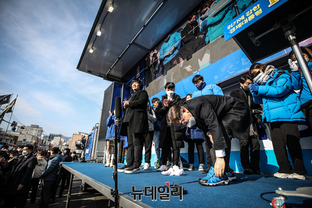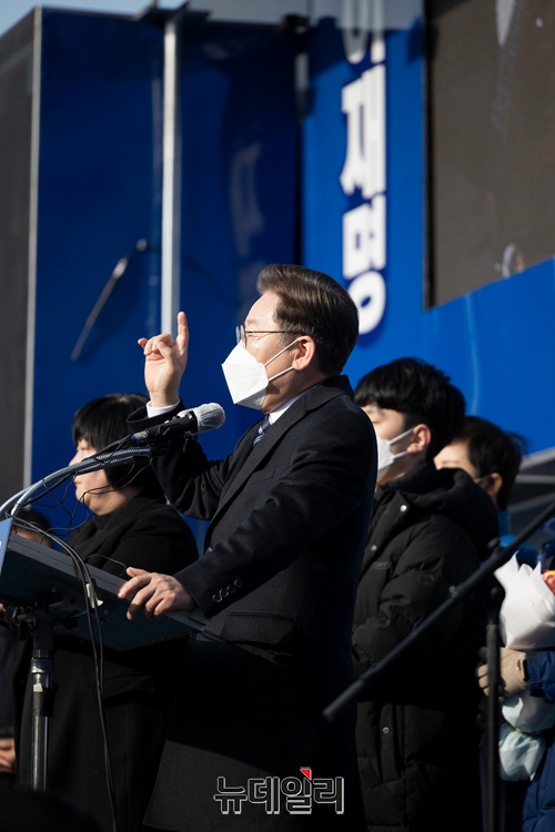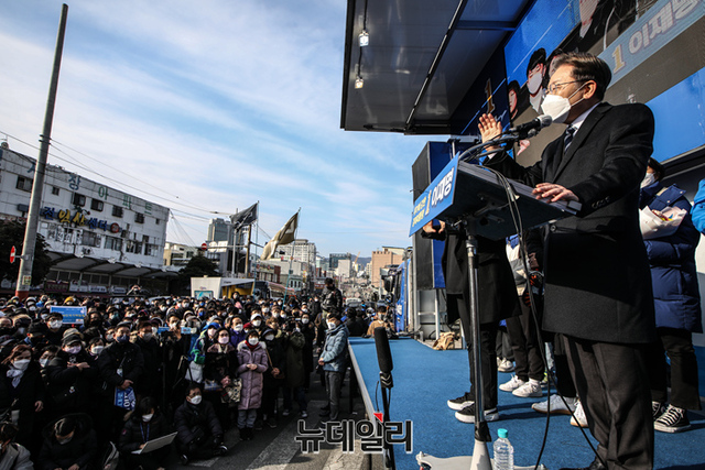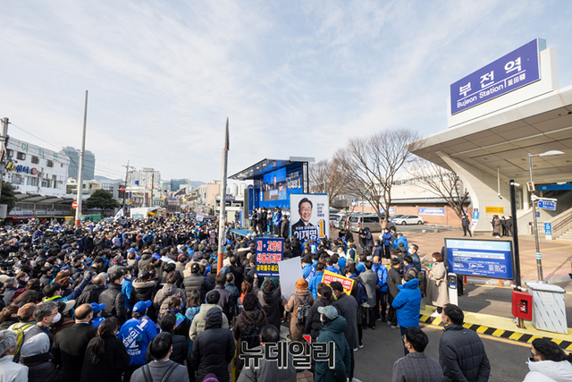 이재명 더불어민주당 대선후보가 공식 선거운동일인 15일 오전 부산 부전역에서 집중 유세를 하고 있다. (사진=이재명 캠프)
