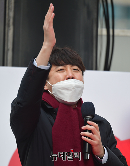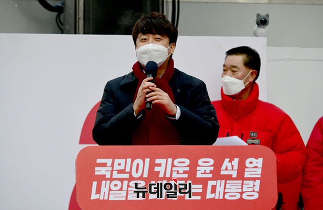 [포토] 윤석열 후보 지지연설 하는 이준석 국민의힘 대표