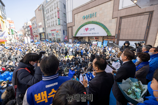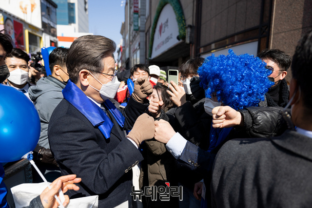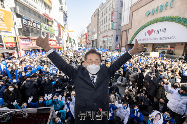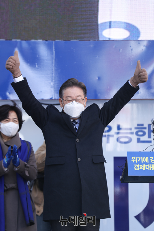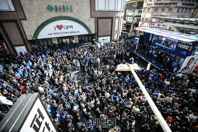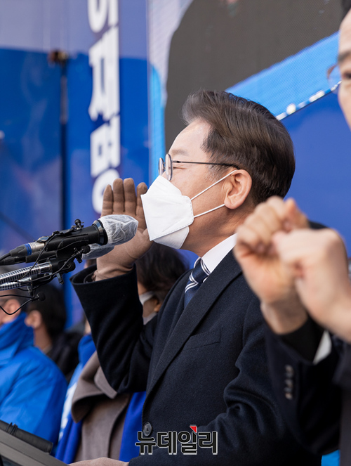 이재명 더불어민주당 대선후보가 공식 선거운동 시작일인 15일 정오 대구 동성로를 찾아 지지호소를 하고 있다. (사진=이재명 캠프)