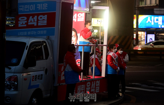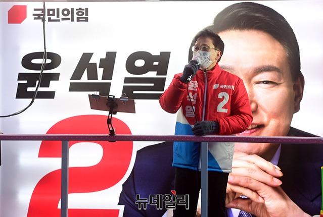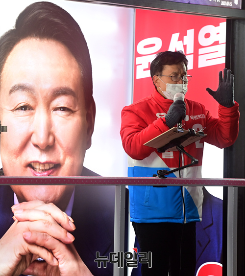 [포토] 윤석열 대선후보 지지호소하는 한상학 당협위원장