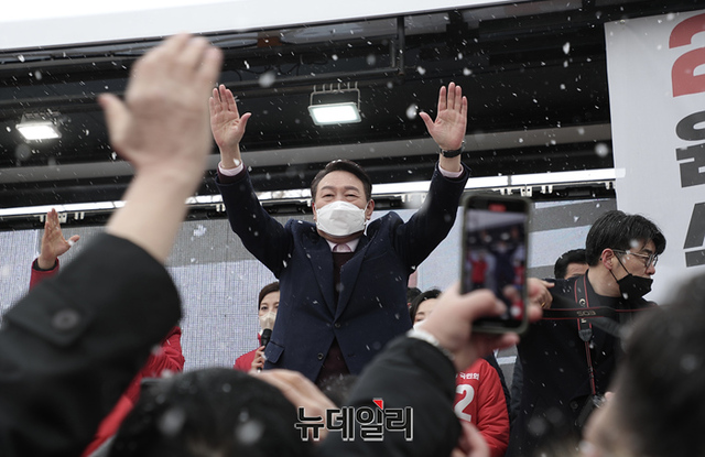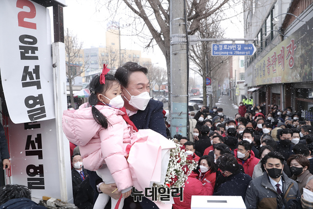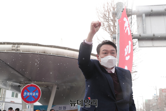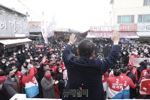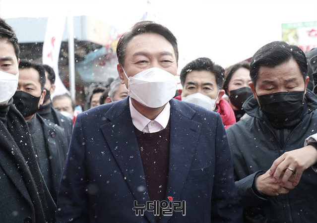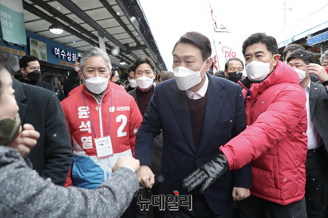 호남지역을 방문중인 윤석열 국민의힘 대선후보가 16일 오전 광주 송정매일시장을 방문해 유세를 이어가고 있다. (사진=윤석열 캠프)