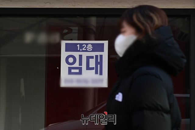 신종 코로나바이러스 사태가 발생한지 3년차를 맞고 있는 16일 오전 서울도심의 한 상가 출입문에 임대 안내문이 붙어 있다. 한국부동산원에 따르면 지난해 4분기 명동 상권 등의 중대형 상가 공실률은 50.1%이며 소규모는 50.3%로 기록했다고 밝혔다.