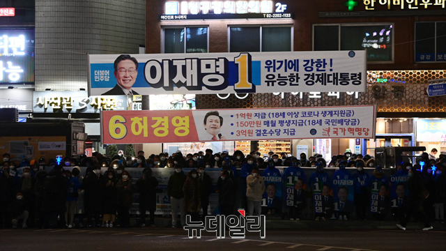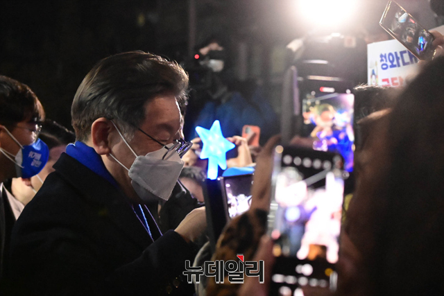 [포토] 야광봉 흔들며 환호하는 이재명 지지자