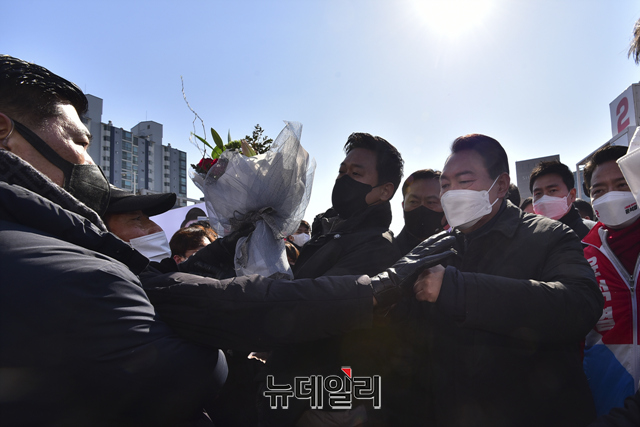 [포토] 윤석열 대선후보, 용인서 응원 받고 인사