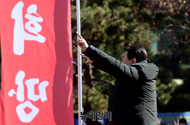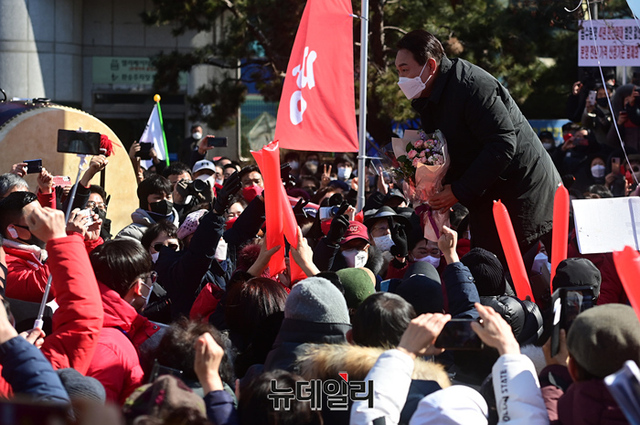 [포토] 경기 성남서 압도적인 지지호소 하는 윤석열