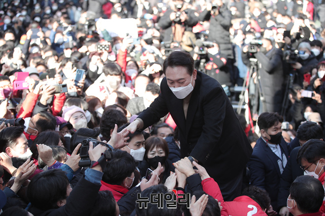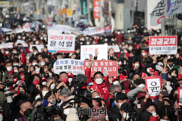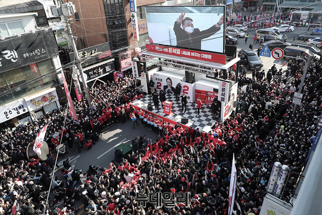[포토] 구미 찾은 윤석열, 유세장에 모인 인파