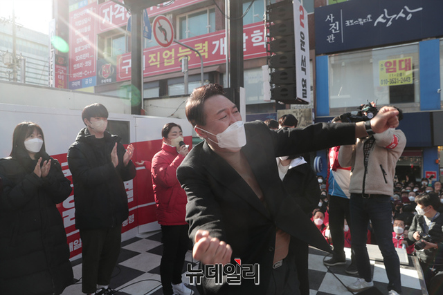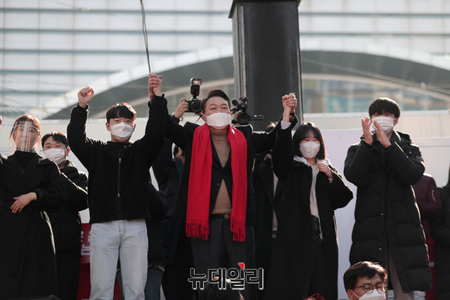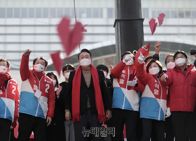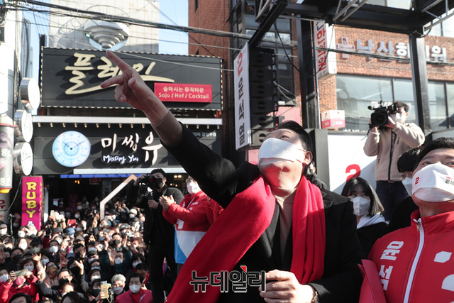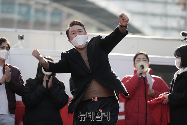 대구·경북지역을 방문 중인 윤석열 국민의힘 대선후보가 18일 오후 구미역에서 열린 집중유세에서 지지호소를 하고 있다. (사진=윤석열 캠프)