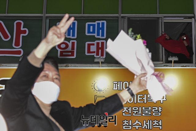 [포토] 꽃다발 받은 윤석열 후보 응원하는 지지자