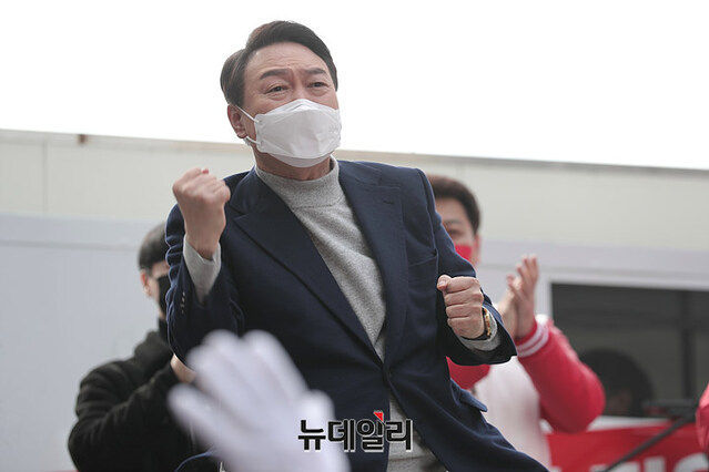 윤석열 국민의힘 대선후보가 19일 오전 경남 양산시 이마트 양산점 인근 유세 현장에서 지지를 호소하고 있다. (사진=윤석열 캠프)