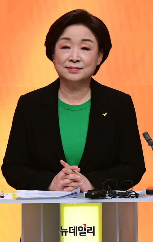심상정 정의당 대선후보가 21일 오후 서울 마포구 MBC 미디어센터에서 열린 중앙선거관리위원회 주관 첫 토론회에서 토론 준비를 하고 있다. (사진=한국인터넷신문협회)