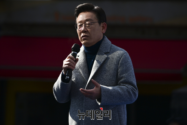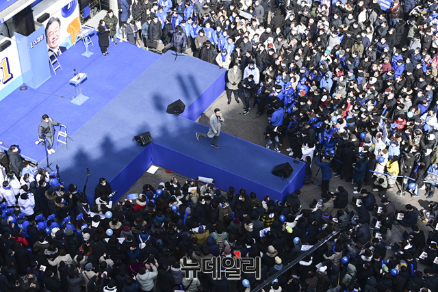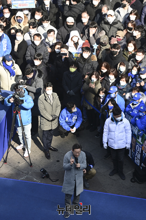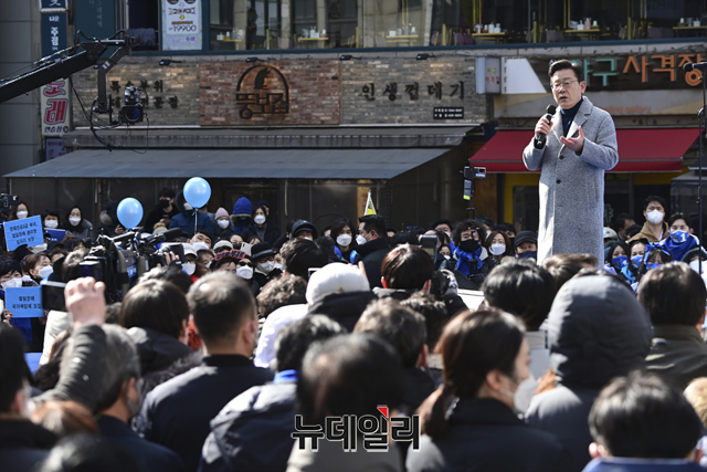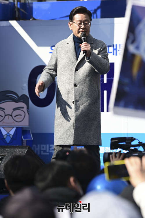 이재명 더불어민주당 대선후보가 22일 오후 인천 남동구 로데오거리광장 유세 현장에서 유권자들에게 지지를 호소하고 있다. (인천=강민석 기자)