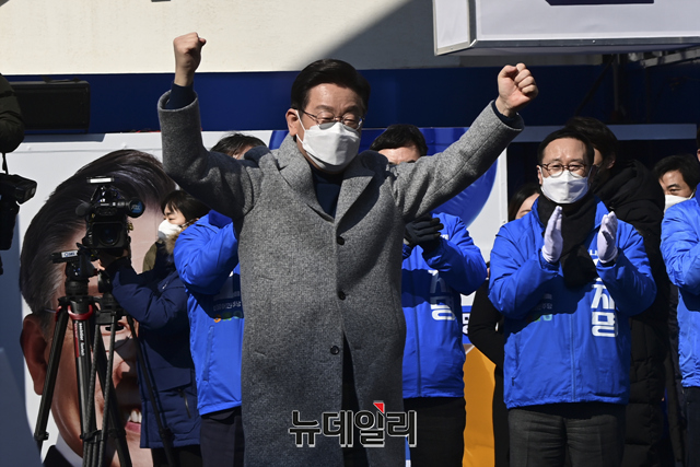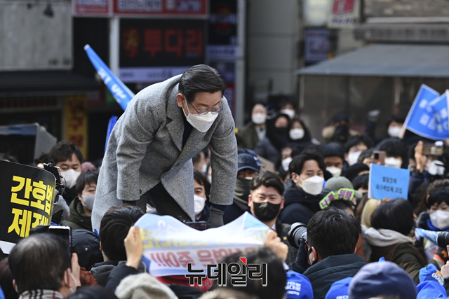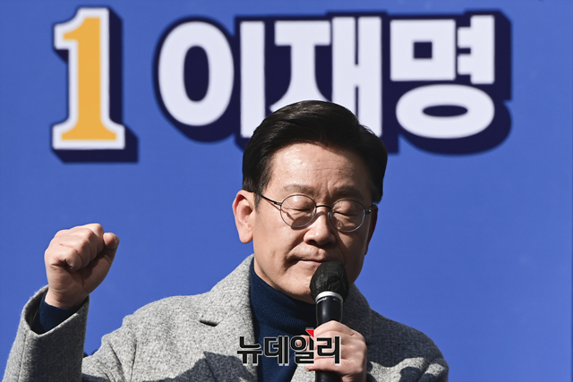 이재명 더불어민주당 대선후보가 22일 오후 인천 남동구 로데오거리광장 유세 현장에서 유권자들에게 지지를 호소하고 있다. (인천=강민석 기자)