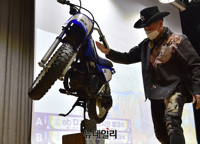 밸런싱 아티스트 변남석, 트롯가수 정호, 하동근, 성빈, 권민정, 이솔이 22일 오후 서울 성북구청 아트홀에서 'sb 다가가는 봉사단' 발대식에 앞서 기념촬영을 하고 있다.