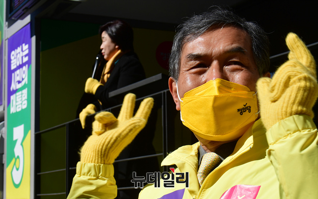 [포토] 지원유세 나선 심상정 후보 남편 이승배 씨