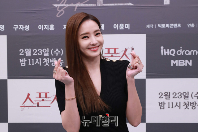 배우 한채영이 23일 오전 온라인으로 열린 IHQ drama 개국 특집 드라마 '스폰서(연출 이철, 극본 한희정)' 제작발표회에서 포즈를 취하고 있다.