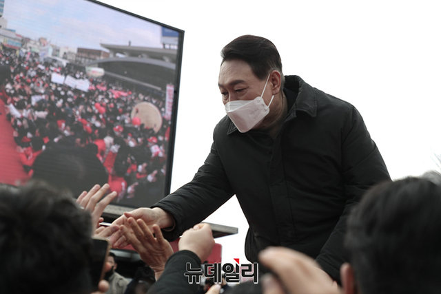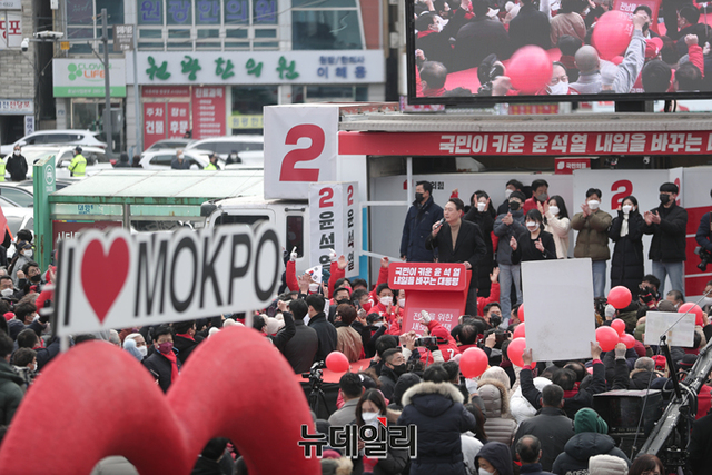 호남지역을 방문중인 윤석열 국민의힘 대선후보가 23일 오후 전남 목포역 광장에서 열린 유세에서 지지호소를 하고 있다. (사진=윤석열 캠프)