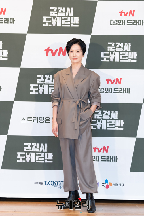 배우 오연수가 23일 오후 온라인으로 진행된 tvN 새 월화드라마 '군검사 도베르만' 제작발표회에 참석해 포토타임을 갖고 있다.