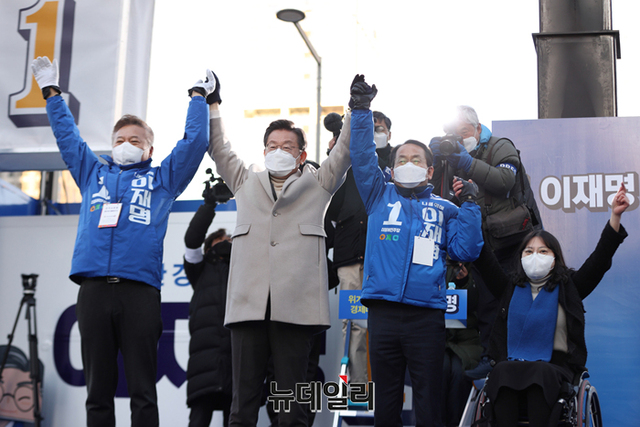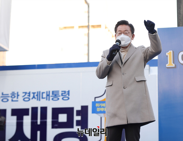 충청지역을 방문중인 이재명 더불어민주당 대선후보가 23일 오후 세종시 나성로에서 열린 유세에서 발언하고 있다. (사진=이재명 캠프)