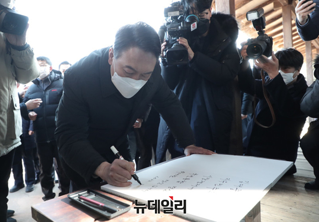 호남지역을 방문중인 윤석열 국민의힘 대선후보가 23일 오후 전남 신안군 김대중 전 대통령 생가를 방문해 참배하고 있다. (사진=윤석열 캠프)