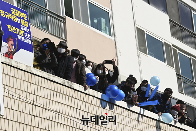 [포토] '청와대를 굿당으로 만들 순 없습니다!' 마스크 쓴 이재명 지지자