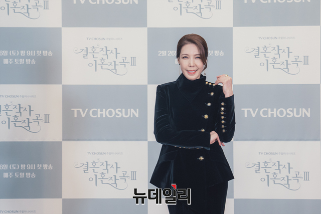 배우 전수경이 24일 오후 온라인으로 열린 TV CHOSUN 새 주말미니시리즈 '결혼작사 이혼작곡3(연출 오상원)' 제작발표회에서 포즈를 취하고 있다.