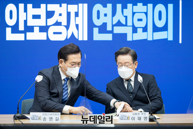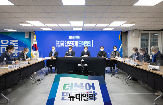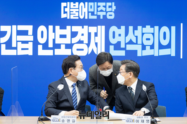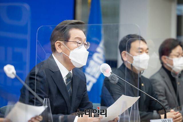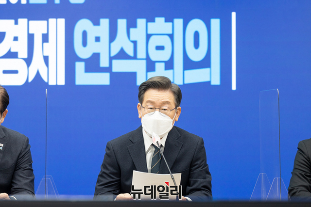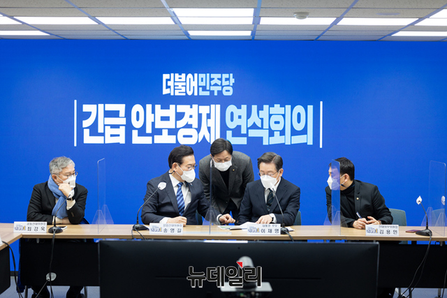 이재명 더불어민주당 대선후보가 24일 오후 서울 여의도 당사 대회의실에서 긴급 안보경제 연석회의에 참석해 발언하고 있다. (사진=이재명 캠프)