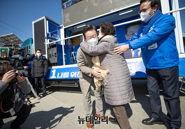[포토] 원주 유세장에 모인 이재명 지지자들