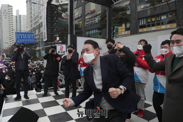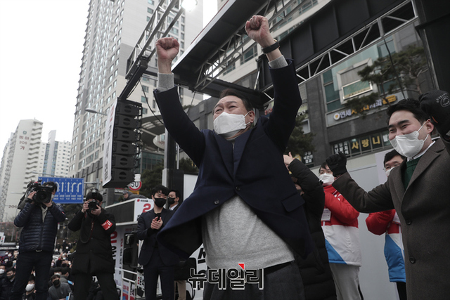 윤석열 국민의힘 대선후보가 26일 오후 서울 구로구 신도림역에서 열린 유세에서 지지호소를 하고 있다. (사진=윤석열 캠프)