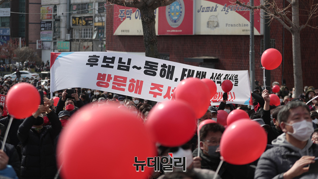 [포토] 강원 동해서 유세 이어가는 윤석열 대선후보