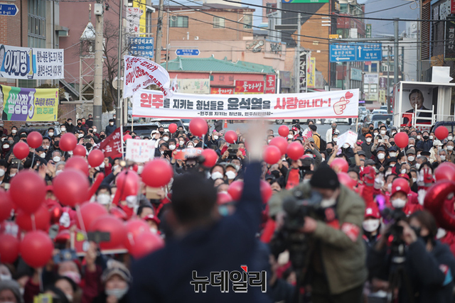 [포토] 강원 홍천서 유세 이어가는 윤석열 대선후보