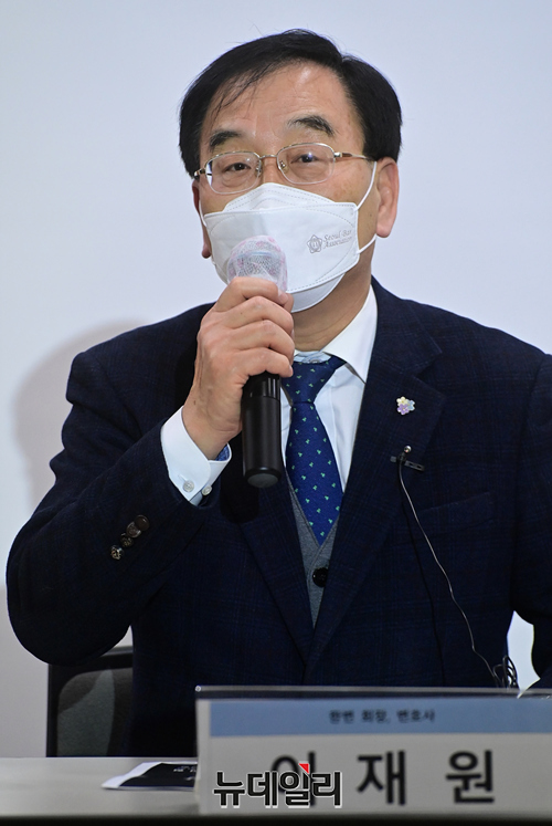 이재원 한변 회장이 2일 오후 서울 서초구 서울지방변호사회 교육문화회관에서 열린 대장동게이트 세미나에서 인사말을 하고 있다.