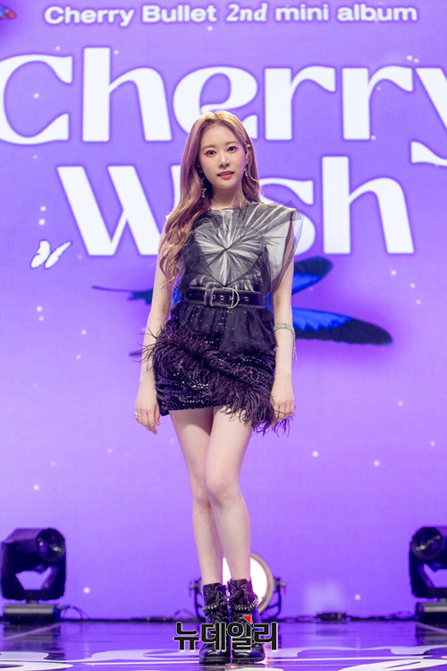 그룹 체리블렛(Cherry Bullet) 보라가 2일 온라인으로 진행된 두 번째 미니앨범 'Cherry Wish' 발매 기념 쇼케이스에 참석해 포즈를 취하고 있다.