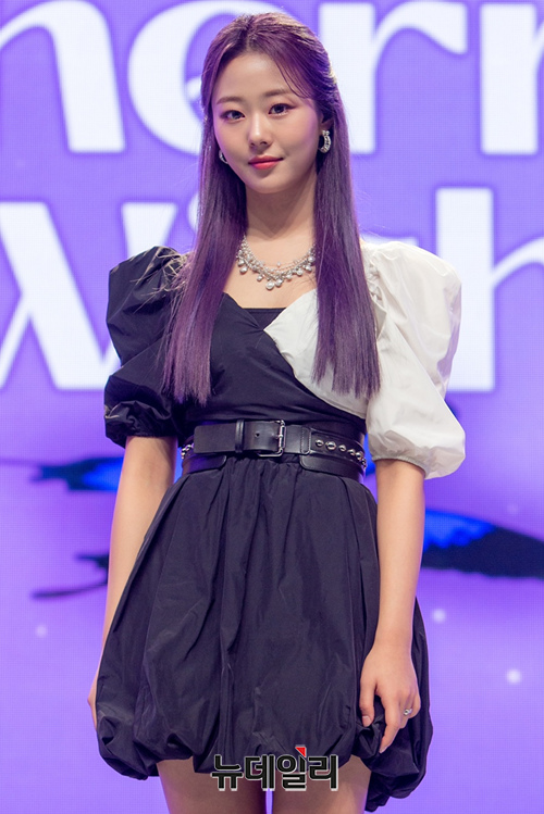 그룹 체리블렛(Cherry Bullet) 채린이 2일 온라인으로 진행된 두 번째 미니앨범 'Cherry Wish' 발매 기념 쇼케이스에 참석해 포즈를 취하고 있다.