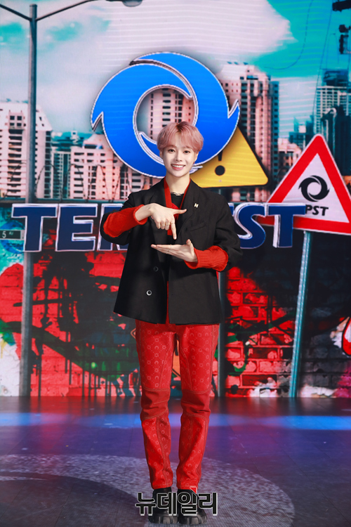 신인 아이돌그룹 템페스트 멤버 한빈이 2일 오후 온라인으로 열린 데뷔 앨범 '잇츠 미, 잇츠 위(It's ME, It's WE)' 쇼케이스에서 포토타임을 갖고 있다.