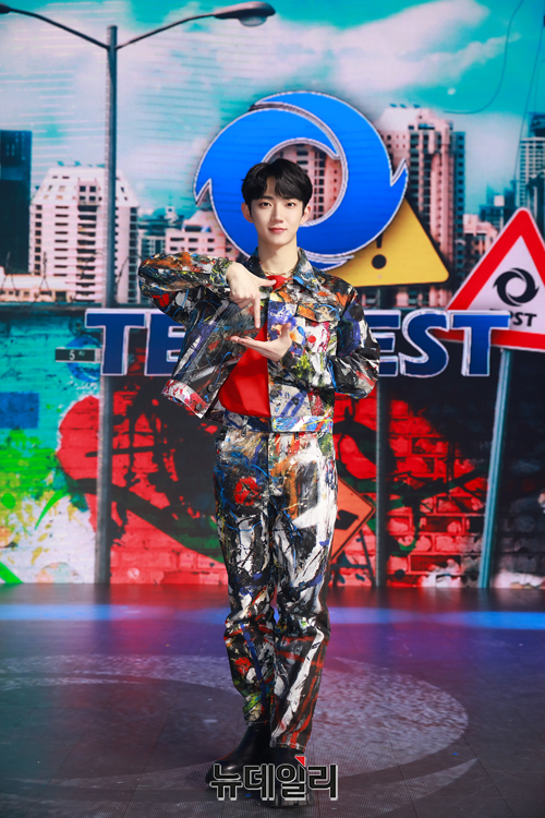신인 아이돌그룹 템페스트 멤버 형섭이 2일 오후 온라인으로 열린 데뷔 앨범 '잇츠 미, 잇츠 위(It's ME, It's WE)' 쇼케이스에서 포토타임을 갖고 있다.