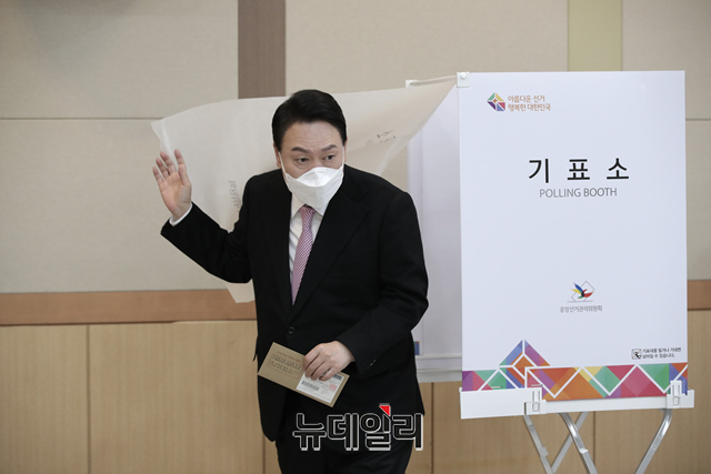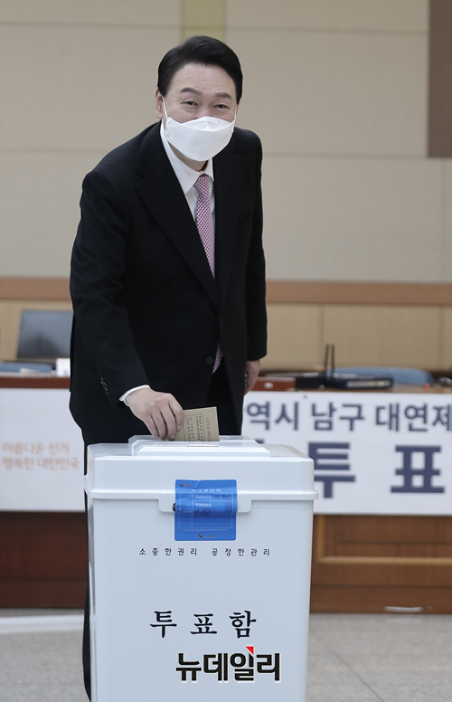윤석열 국민의힘 대선 후보가 4일 부산 남구 대연동 부산남구청에 마련된 제20대 대통령 선거 사전투표소를 찾아 사전투표를 하고 있다. (사진=윤석열 캠프)