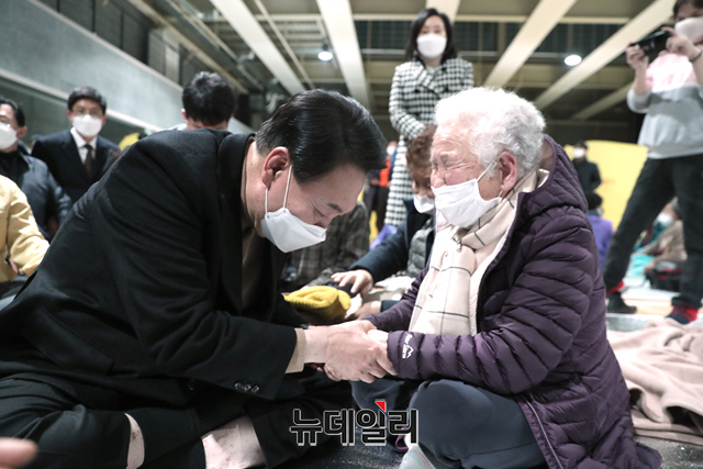 [포토] 윤석열, 유세 마치자마자 '울진' 찾아 주민 위로