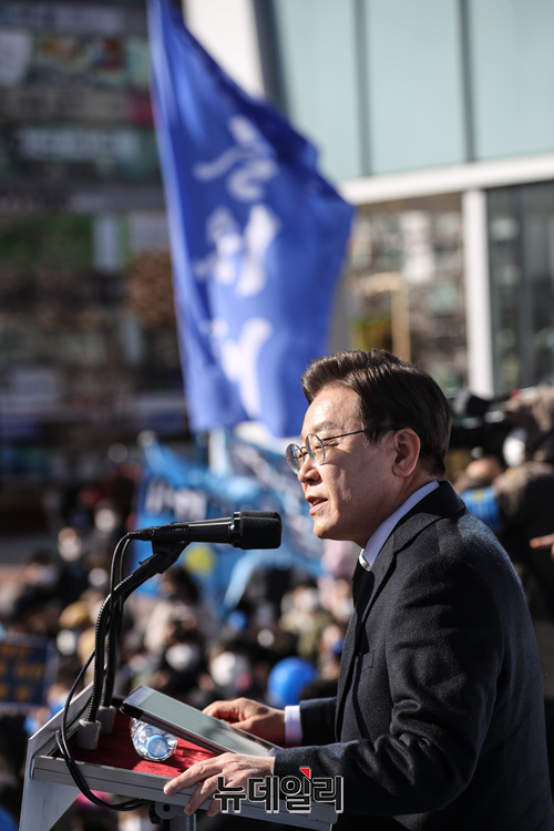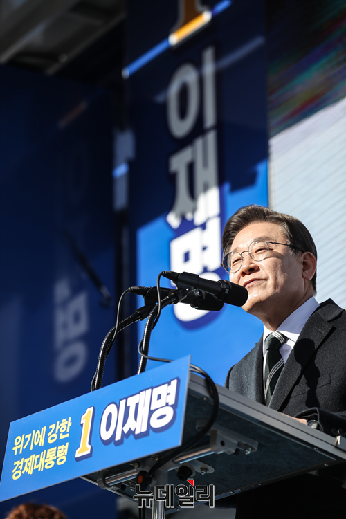 이재명 더불어민주당 대선후보가 5일 오후 경기 오산시청 앞 광장에서 열린 유세에서 지지호소를 하고 있다. (사진=이재명 캠프)