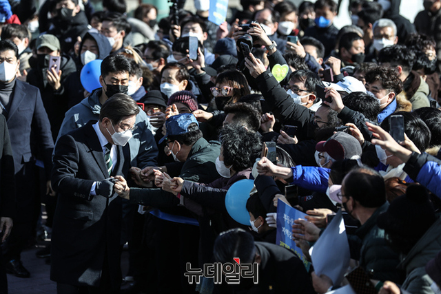 [포토] 경기 오산서 지지호소하는 이재명 대선후보