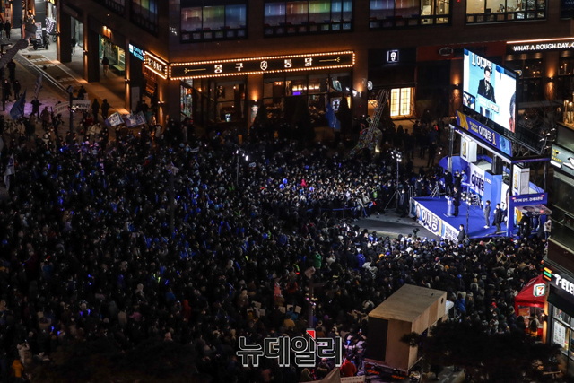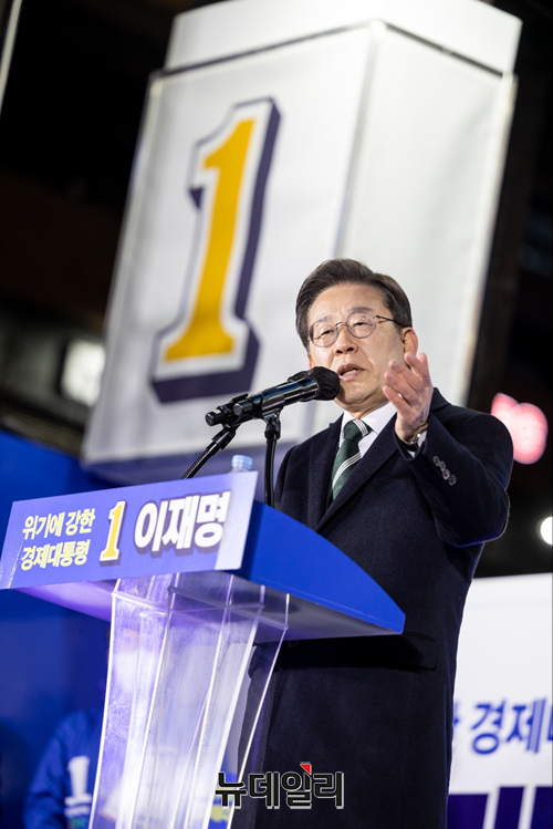 이재명 더불어민주당 대선후보가 5일 오후 경기 시흥시 배곧신도시 광장에서 열린 유세에서 지지호소를 하며 포즈를 취하고 있다. (사진=이재명 캠프)