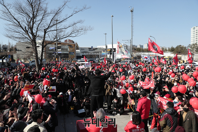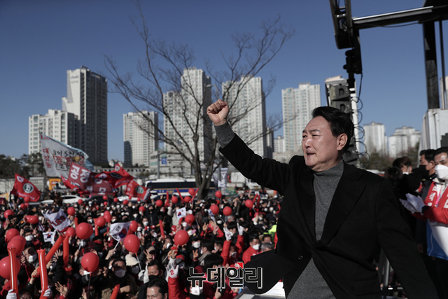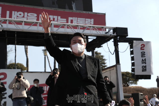 윤석열 국민의힘 대선후보가 6일 오후 경기 파주시 새암공원에서 열린 유세에서 지지호소를 하고 있다. (사진=윤석열 캠프)