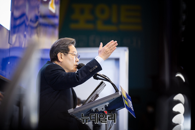 이재명 더불어민주당 대선후보가 6일 서울 용산구 용산역 광장에서 열린 '위대한 국민의 선택! 이재명입니다!' 유세에서 지지를 호소하고 있다. (사진=이재명 캠프)