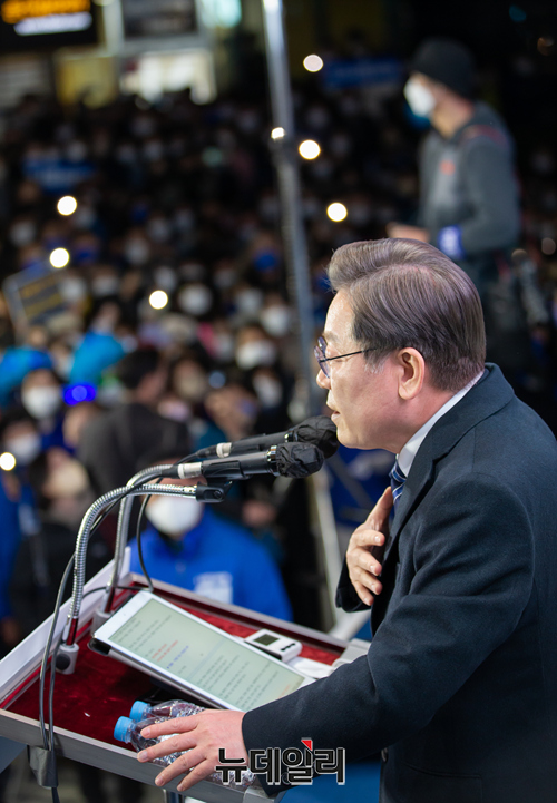 이재명 더불어민주당 대선후보가 7일 오후 대전 서구 둔산갤러리아 앞에서 열린 유세에서 지지호소를 하고 있다. (사진=이재명 캠프)