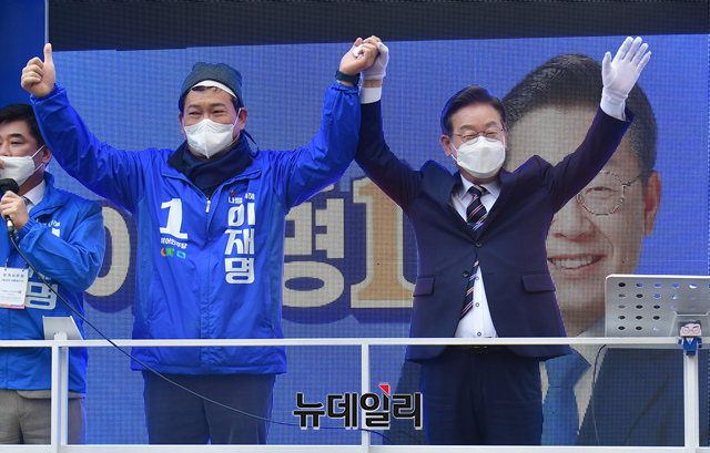 [포토] 송영길 대표 대동하고 유세하는 이재명 후보